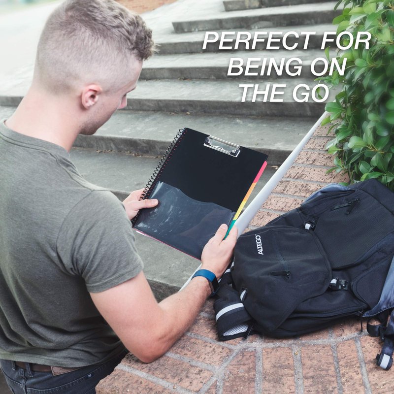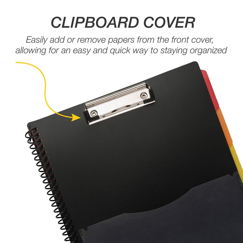 - Sturdy Clipboard Front Cover - Need an accessible writing surface? A staging area to place notes while studying. The handy, built-in clipboard gives you an easy way to keep your papers front and center and easily accessible. The choices are yours. The options endless.