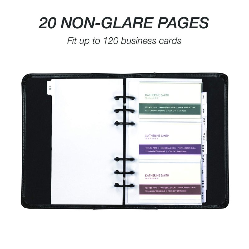 - A-Z indexes and pages to hold 120 business cards