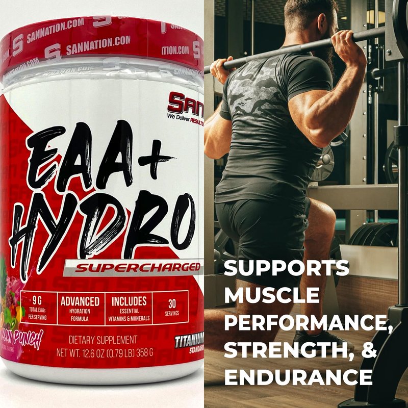Elevate your muscle performance with EAA+ HYDRO Supercharged, the ultimate powerhouse for your fitness journey. Crafted to perfection, this super fuel combines the potency of Essential Amino Acids (EAAs) with vital electrolytes, ensuring your muscles are primed for peak performance. Unlock your true potential with EAA+ HYDRO Supercharged. Its unique blend of EAAs aids in muscle repair and growth, while the replenishing electrolytes keep your muscles firing on all cylinders, even in the most demanding workouts.