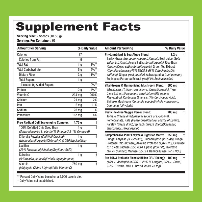 SAN Nutrition’s Green Supreme Fusion Blend Antioxidant: Super Greens Smoothie Mix with Spirulina, Chlorella, Adaptogenic Mushrooms, 30 Servings