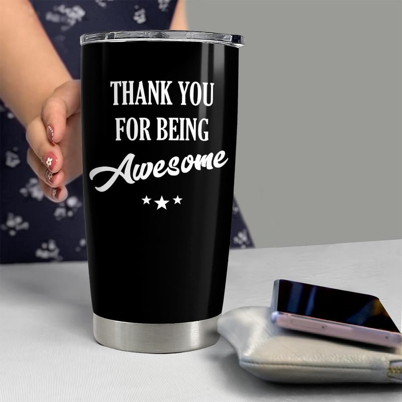 SANDJEST Thank You for Being Awesome Tumbler Gift Set - Birthday, Christmas, Appreciation Inspirational Gifts for Women, Men, Coworkers - 20oz Stainless Steel Insulated Coffee Travel Mug