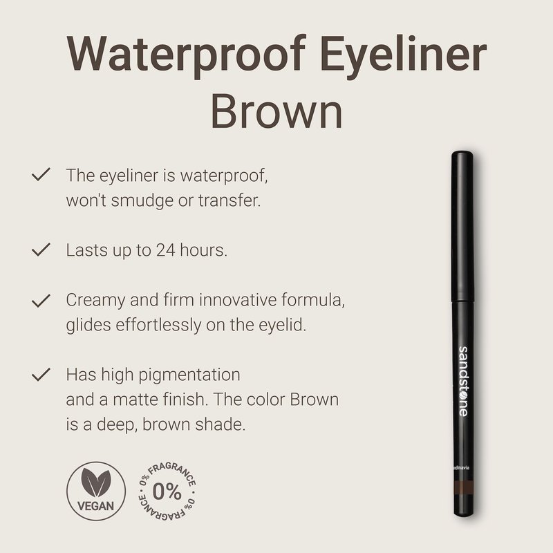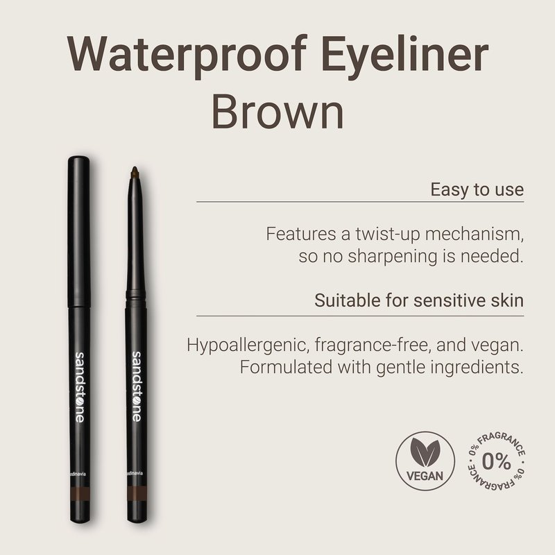 Sandstone Scandinavia Brown Waterproof Eyeliner Pencil - Vegan Hypoallergenic Eyeliner for Sensitive Eyes - Smudge Proof Gel Eyeliner Brown - Anti-Aging Properties Hypoallergenic Makeup