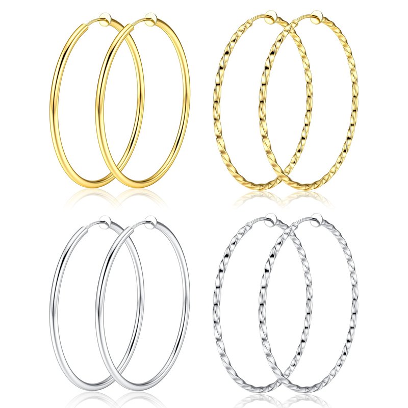 - Clip on Hoop Earrings: Unpierced hoop earrings include 2 pairs gold hoop earrings clip ons and 2 pairs silver hoop clip on earrings, classic hoop earrings and twisted hoop earrings with spring loaded, look just like pierced hoops, perfect hoop earrings for unpierced ears.