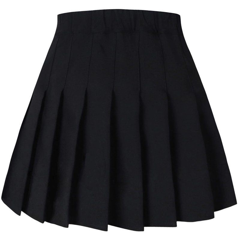 SANGTREE Toddler Little & Big Girls' Women Solid Plain Pleated School Uniform Short A-Line Skirt, Black, 13-14 Years/Height 66.9" = Tag 170