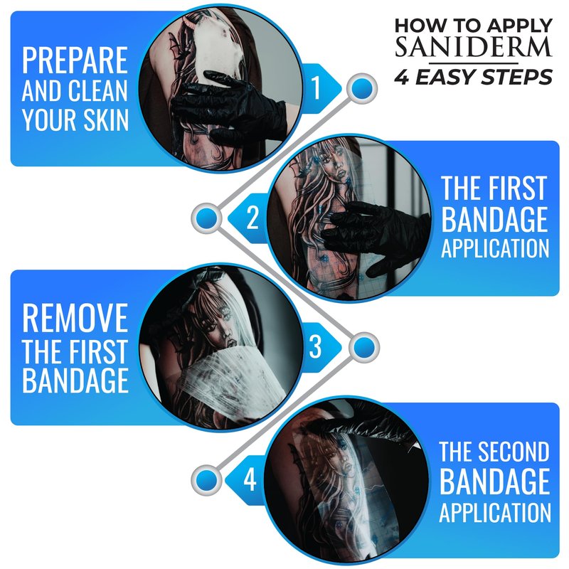 - YOUR TATTOO WILL LOOK BRIGHTER AND NEWER FOR LONGER: When you use Saniderm medical-grade adhesive bandages you get more vibrant colors and darker darks. Saniderm does this by locking in the moisture your body needs to heal quickly, reduce peeling, and eliminate dryness and scabbing on your tattoo.