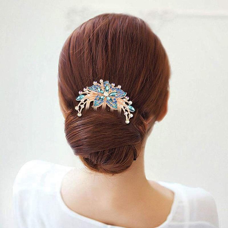 Sankuwen Flower Rhinestones Hair Combs Accessories,Perfect Mother's Day Gifts,Birthday Gifts,Wedding Gifts(Blue)
