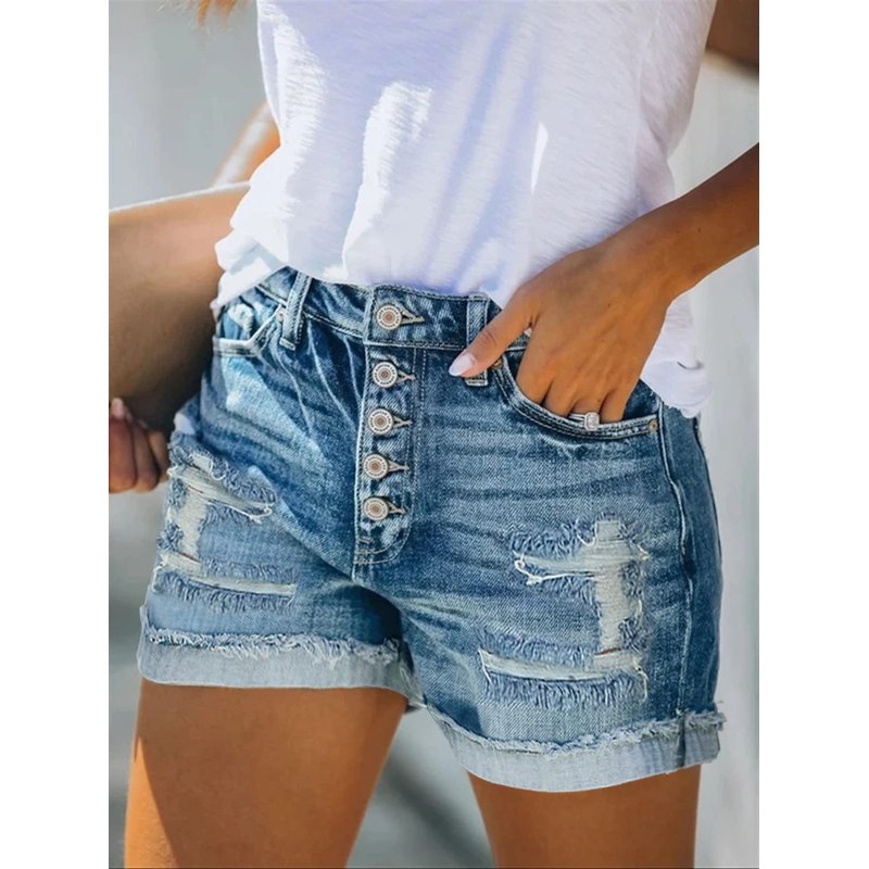 - Casual summer stretchy short jeans denim pants:Zipper Fly, high waist,folded hemline, ripped, washed,5 pockets,stretchy,button closure,soft and durable shorts for women,casual mid waist ripped destroyed shorts jeans,slim fit,fashion and cute denim shorts.