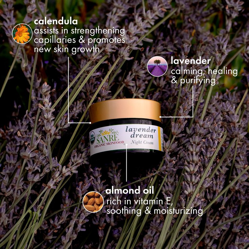 SanRe Organic Skinfood - Lavender Dream - 100% USDA Organic Lavender and Calendula Night Cream For Dry to Normal Skin