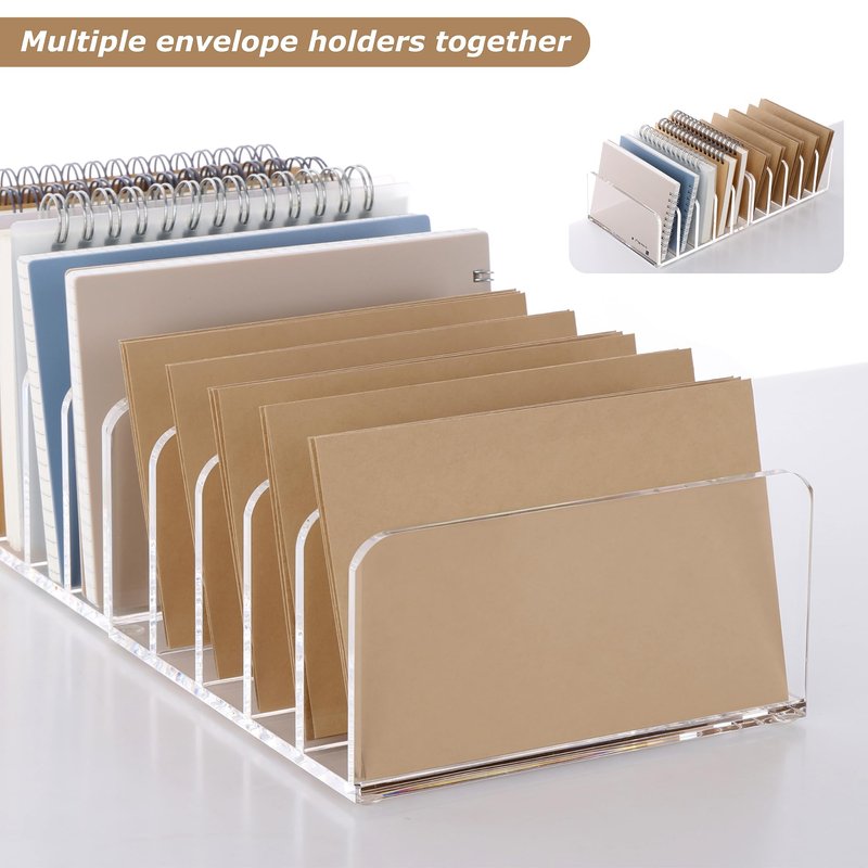 - Sturdy And Compact Desk Envelope Organizer:This desk organizer is a perfect addition to your desktop. The file sorter rack also features adhesive pads on the bottom to securely fasten it to your desktop.The clear acrylic design is simple and beautiful, making it very practical in homes, offices, schools and elsewhere.