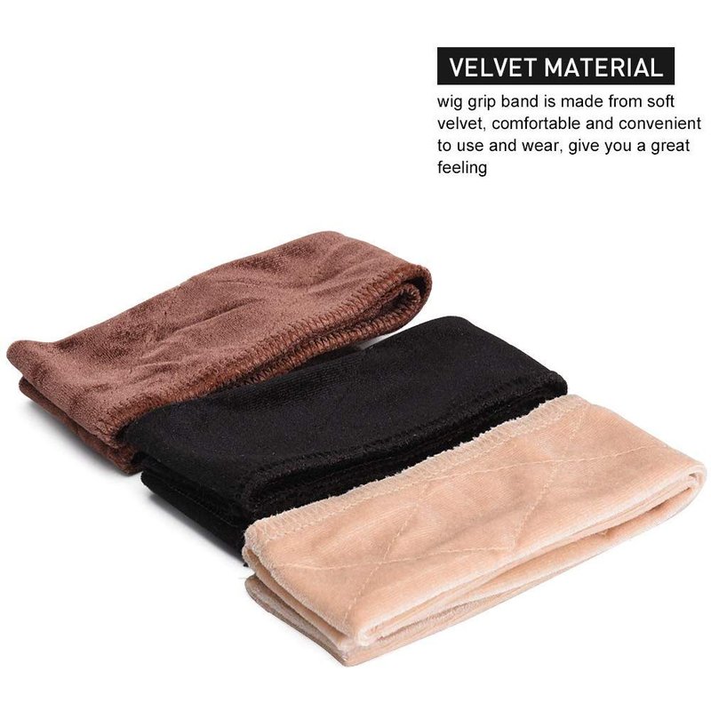 Adjustable design comfort head: length is approx. 21.5 inch, one size fits most; Perimeter can be adjusted from 16 inches to 22 inches to suit your head size Durable and comfortable: the wig grip band is made from soft velvet, good quality material make it comfortable and convenient to use and wear。 Secures objects in place: fasten your wig, hat or scarf securely without glues, tapes, clips or combs; Won't slip, slide or move even if your wig is stretched out Help prevents headaches: eliminates wig-related headaches by placing a barrier between your skull and the wig's materials, fit your head snugly