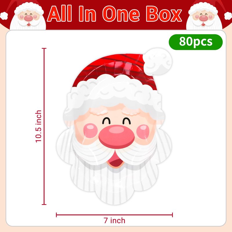 - Santa Claus Party Plates:You will received 80 pieces of Christmas Santa Claus disposable paper plates in one pack.Each dinner Xmas plates are strong and festival.