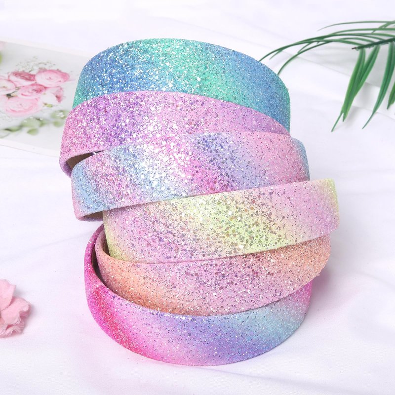 This is a Glitter Headband specially designed for girls and women. Features: 1.Fashion classic glitter headband 2.It has a wide range of uses, girls hairbands can be used as decorations or as auxiliary tools for hair Product details: Material: Made of plastic glitter Quantity: 6 pieces