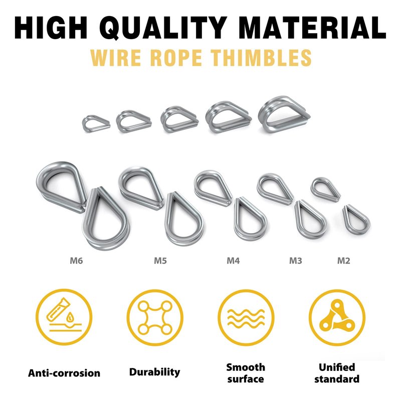 - SIZE: M2 - 2mm Wire Rope Thimbles fit for 1/16''-3/32'' Diameter Wire Rope Cable.