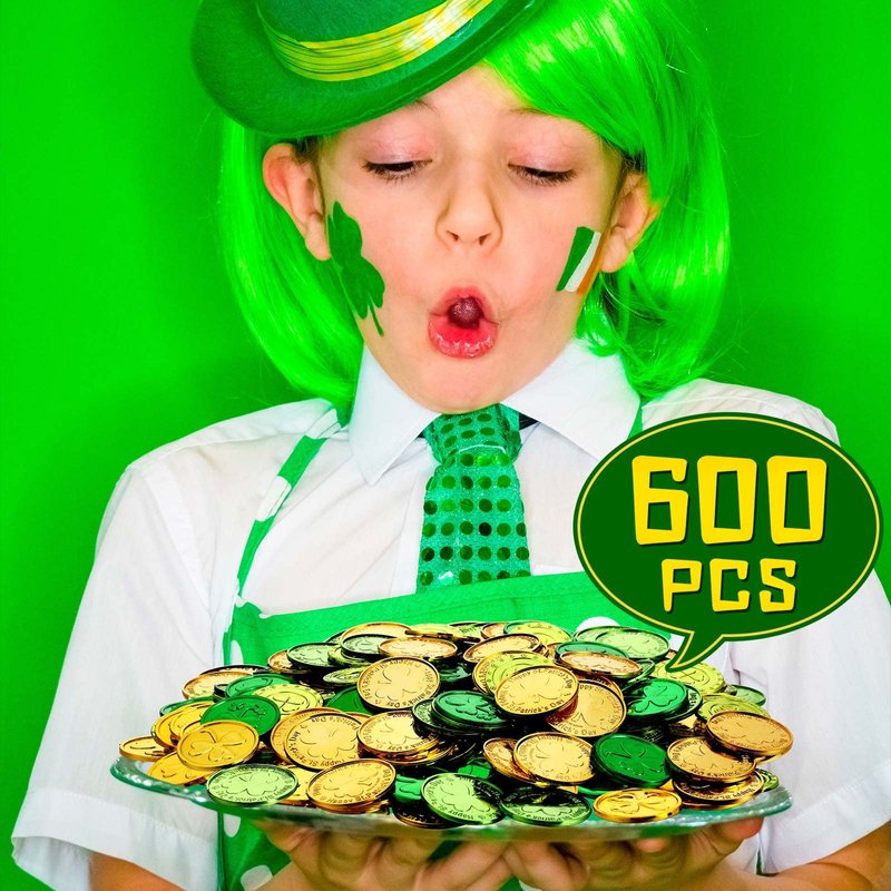 Features: The St Patrick's day decorations coins can be applied as delicate gifts given to your family members or friends, to deliver the good luck and happiness. The shamrock pattern coins are also suitable as gift bag fillers, game prizes, class rewards, and more. Specifications: Material: plastic Color: gold, green Size: 3.5 cm/ 1.4 inch in diameter Package includes: 600 x St. Patrick's Day coins Notes: Manual measurement, please allow slight errors on size. The color may exist a slight difference due to different screen displays. Small sized items, please keep away from kids to avoid suddenly swallowing.