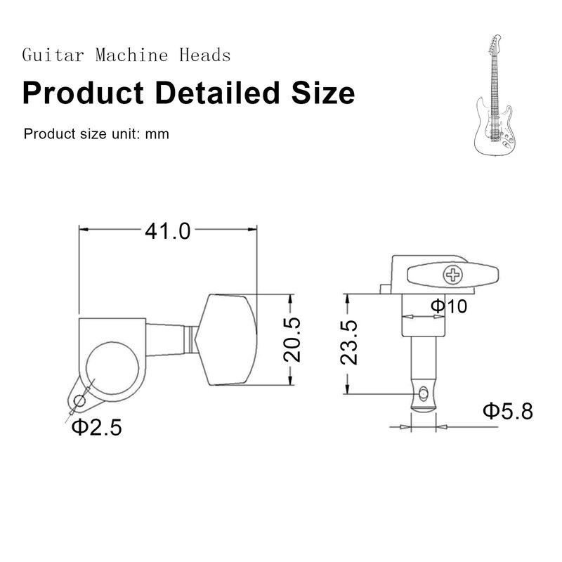 - Guitar tuners pegs with heavy duty internal gear;Gear Ratio:1:15.