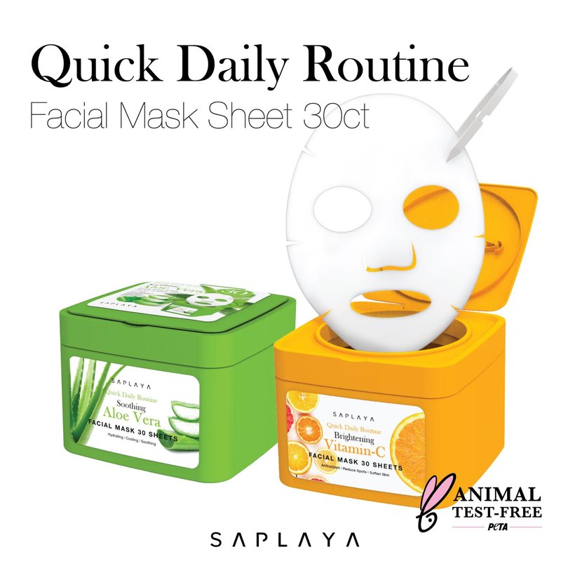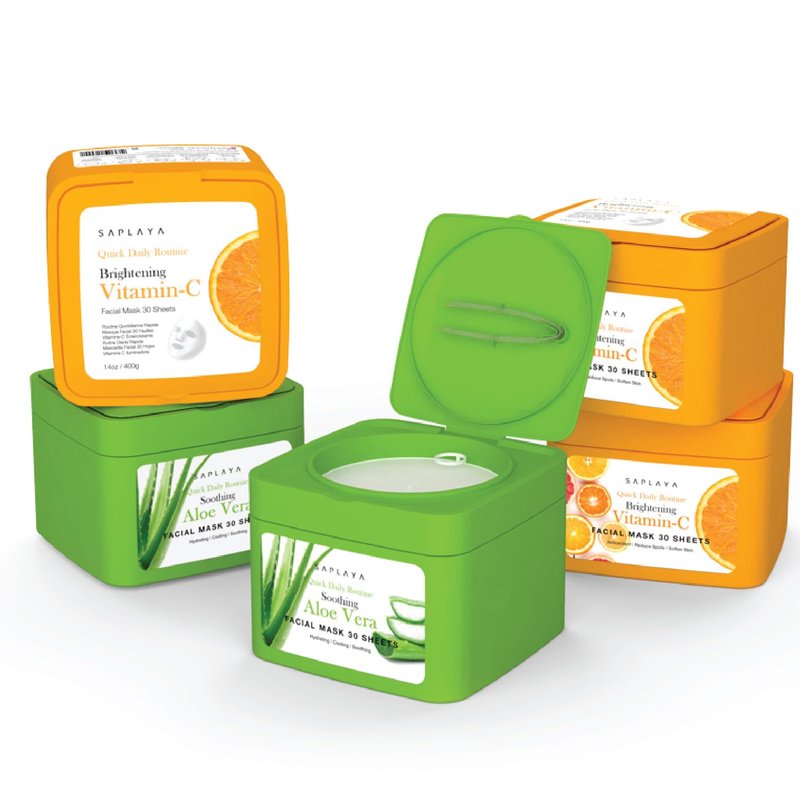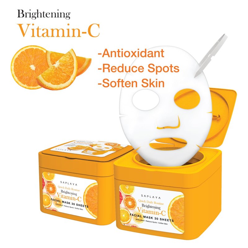 Saplaya 30 Sheet Quick Daily Routine Brightening Vitamin-C, Aloe Vera Clensing Facial Mask Sheets