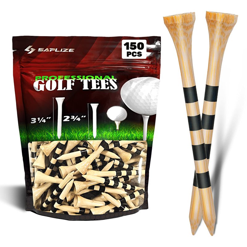 SAPLIZE Bamboo Golf Tees 150 pcs (3-1/4"), Biodegradable Material, More Durable and Stable, Reduce Side Spin and Friction