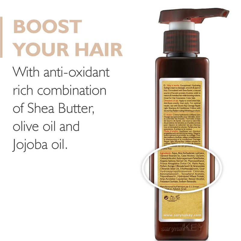 - SARYNA KEY’s ultra-hydrating styling cream detangles, smoothes and controls frizz. Our Leave-In Moisturizer is formulated with Shea Butter, one of nature’s purest and richest sources of keratin proteins and amino acids which restore and revitalize your hair whilst boosting its volume. Ideal for hair extensions. Color-safe.
