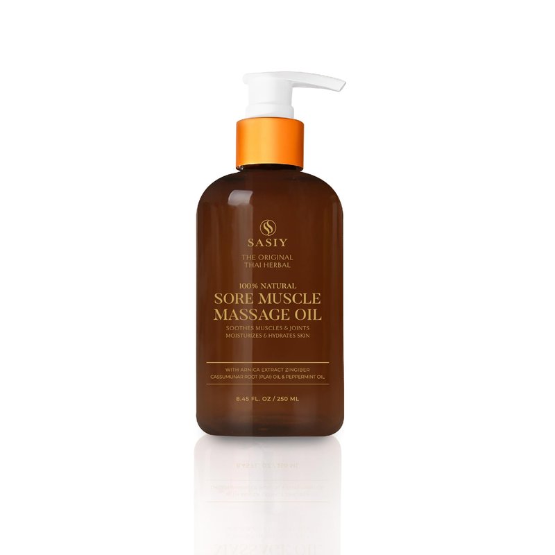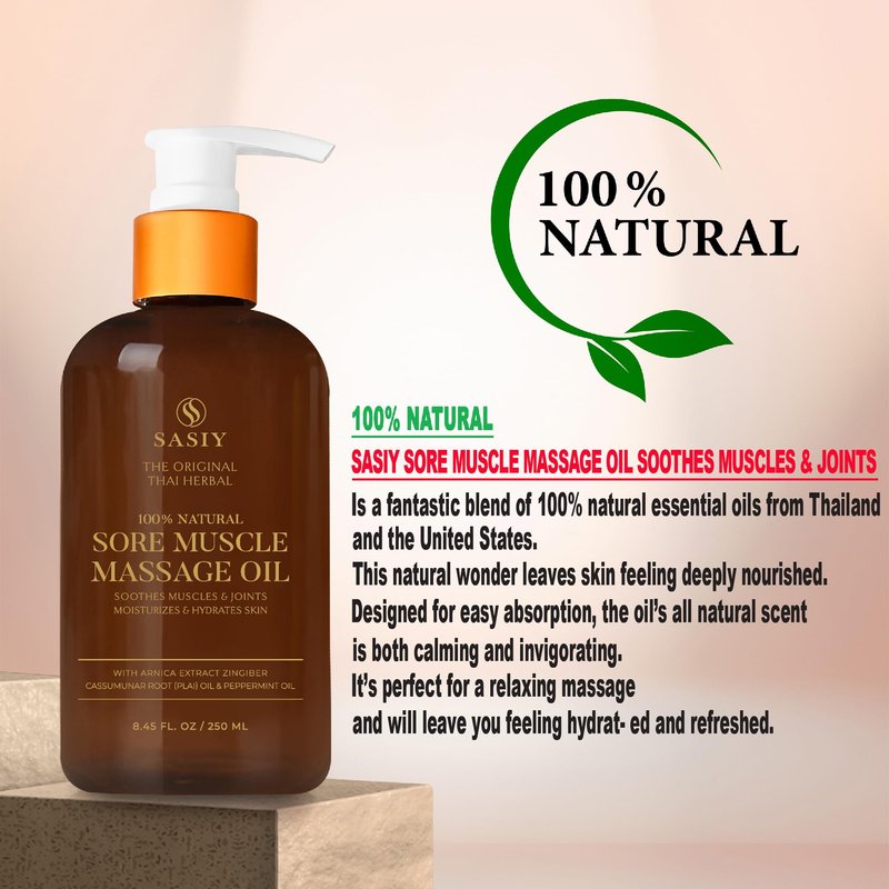 Features & details SASIY The Original Thai Herbal Massage Oil - 100% NATURAL - Sore Muscle Massage Oil is a fantastic blend of 100% natural essential oils from Thailand and the United States. Crafted in the USA with a unique blend of premium quality oils, This natural wonder leaves skin feeling deeply nourished. Designed for easy absorption, lightweight and non-greasy the oil's all natural scent is both calming and invigorating. It’s perfect for a relaxing massage and will leave you feeling hydrated and refreshed.