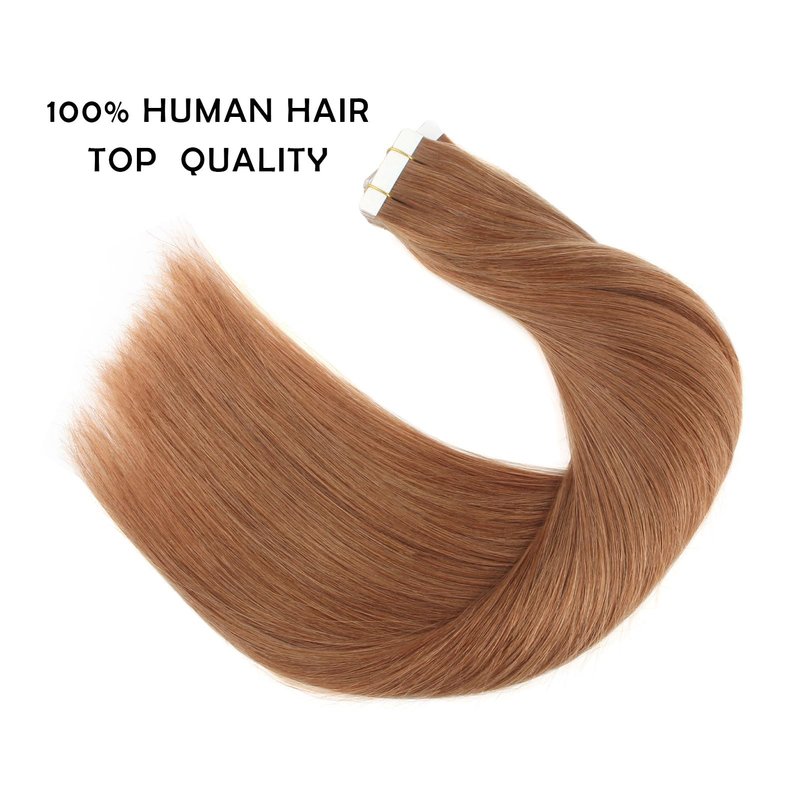 Sassina Semi-permanent Tape in Human Hair Extensions 20pcs 50g Silky Straight Human Hair Extensions Light Auburn Color Invisible Seamless Reusable Tape in Hair Extensions 30# 20 Inch