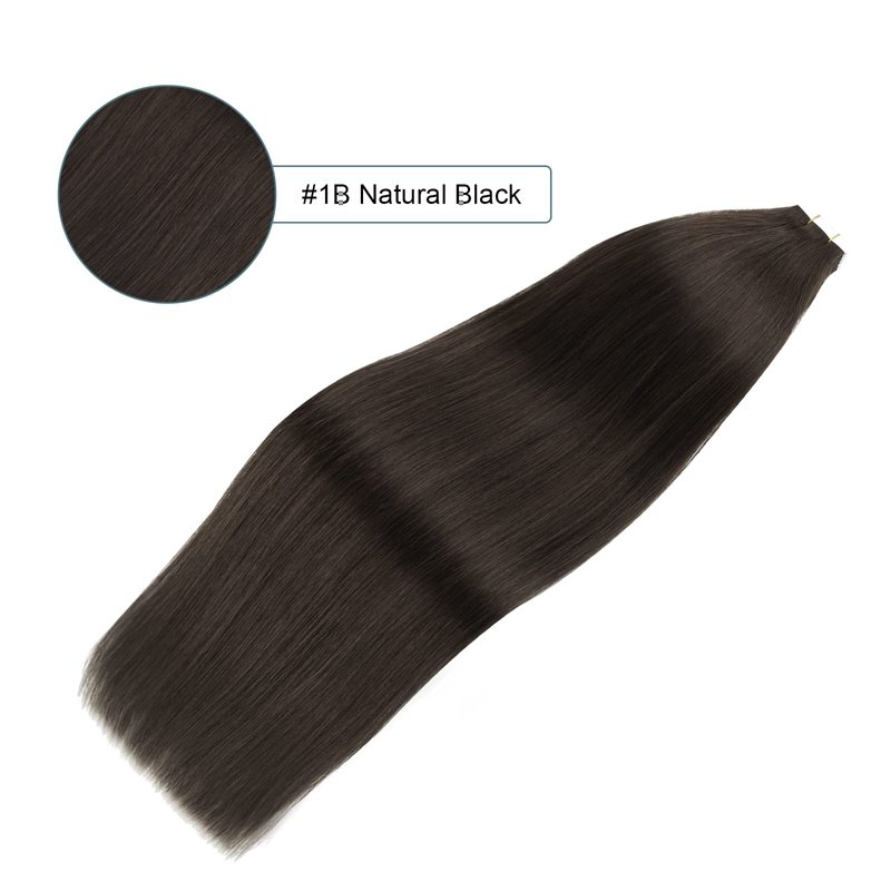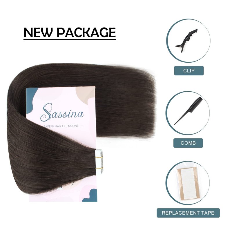 Sassina Tape in Hair Extensions Double Sided Skin Wefts Tape in Remy Human Hair Extensions Natural Black Seamless Skin Weft Tape in Extensions 20Pcs 50g per set 14inch #1B