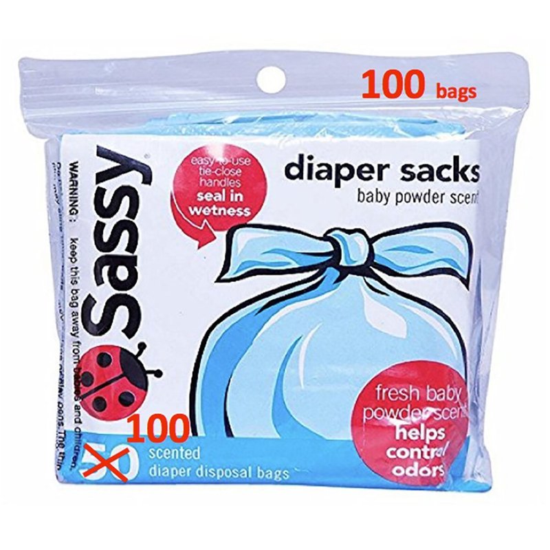 Sassy Disposable Scented Diaper Sacks - 100 Count - 25 Sacks per Roll, Blue (40012)