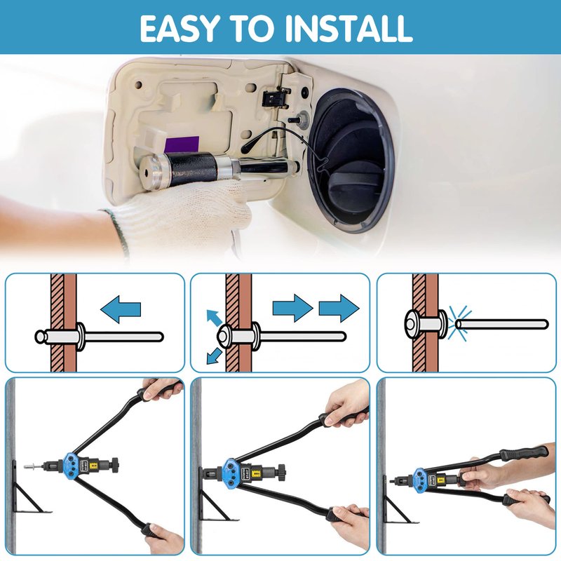 - 【Great Performance】Adopting self-plugging open end design, 14 SAE sizes, well matched with the rivet gun. Smooth surface, strong and handy, easy to install. These rivets are perfect for joining all kinds of metal plate and pipe, durable and no deformation.