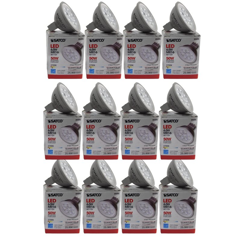 SATCO S9495 Reflector LED Light Bulb MR16 6.5 Watt 12 Volt 2700K Warm White Light 40 deg. Beam Angle; GU5.3 Base (12 LED Light Bulbs)