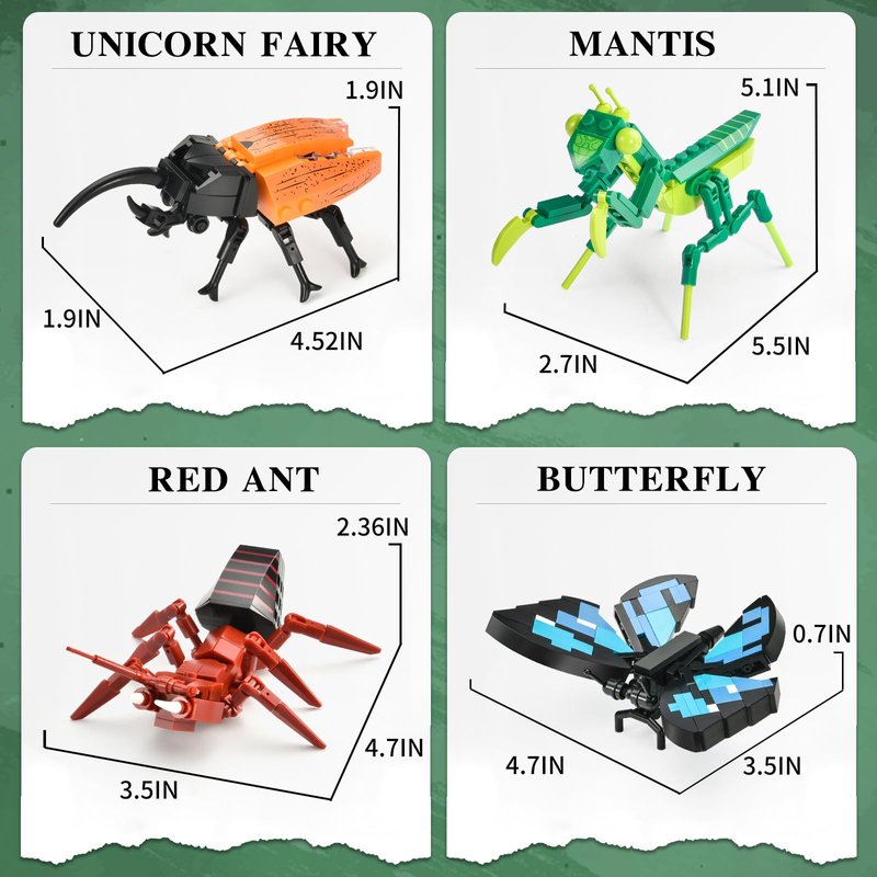 - Easy to Assemble:This insect building block set consists of 772 high-quality blocks, with easy to operate and detailed color instructions. Children can easily assemble this set of insect models