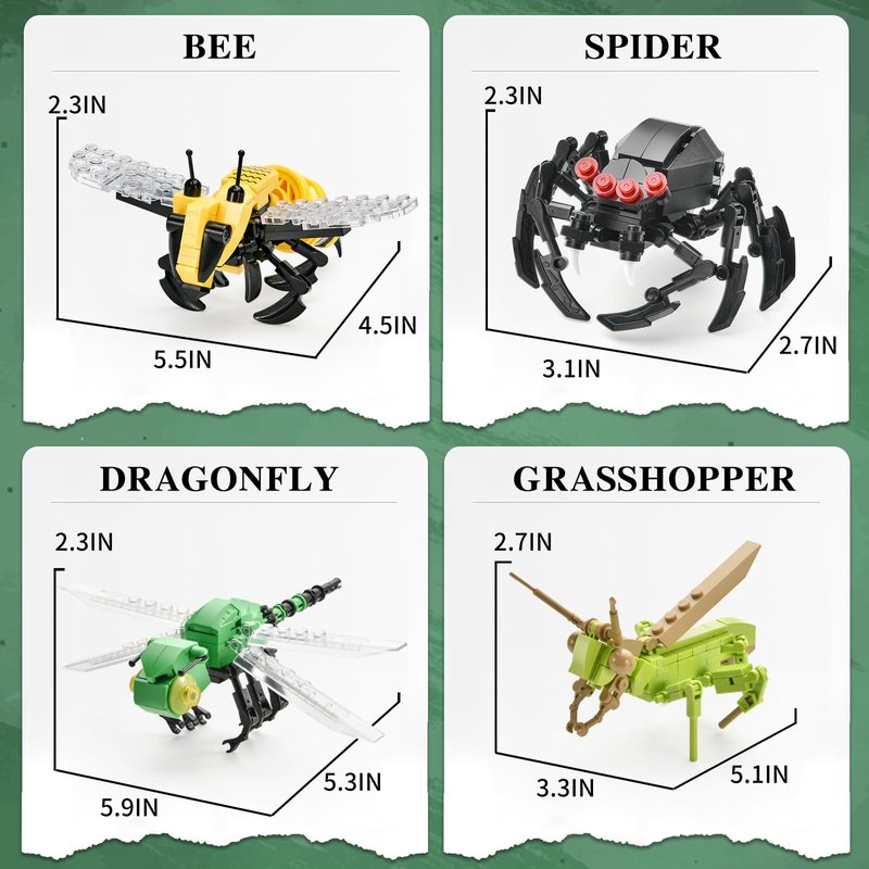 - Cute Insect Shaped Design:This insect model consists of mantises, butterflies, beetles, dragonflies, grasshoppers, red ants, spiders, and bees. Enhancing children's interest in construction and color recognition ability by constructing insect models