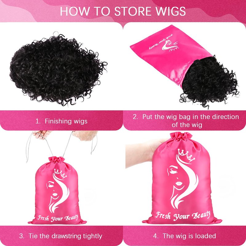 - Save space:It is the best way to store your wigs as they seem to dry out sitting on wig stands for extended periods of time. These bags are soft and made of thick quality material. there is enough space to store 5-8 bundles or 3 wigs in one bag, depending on length and density. the bag can store them neatly and gain space by removing wig heads.