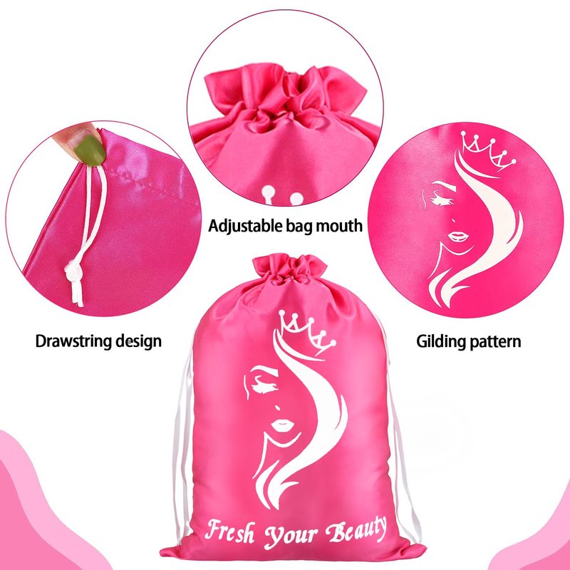 Satin Bags With Drawstring Satin Packaging Bags for Bundles,Wigs,Hair Extensions,Tools, business gift bags Hair Storage and Travel Bags Soft Silk Satin Pouches with Drawstring (6 PCS Pink)
