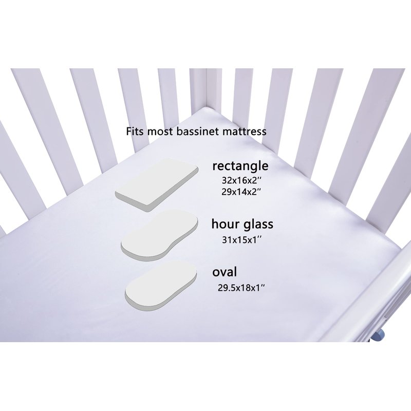 - Universal Fit:(32"X17"X4").a little strechy.Fits all standard bassinet sheet within 17"x32", fit almost all standard oval, round, rectangle, hourglass shaped bassinet mattress and beside sleepers.Compatible with Halo, Baby Bjorn, Chicco, Fisher Price, Ingenuity, Evenflo, Graco, UppaBaby, Delta & Nuna Sena.
