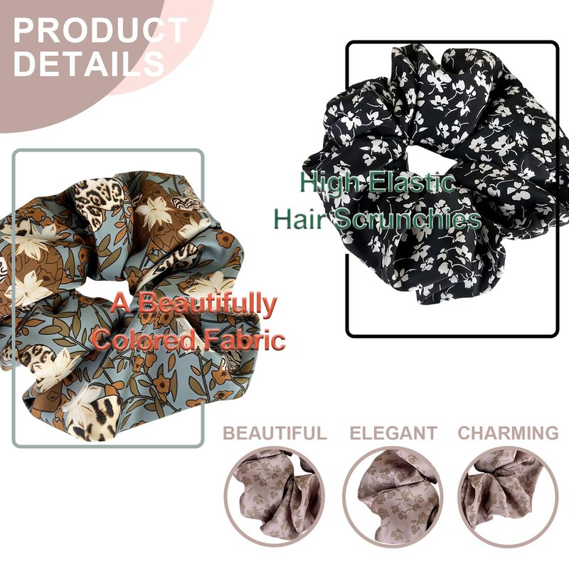 - 【Unique Floral Design】The satin hair scrunchies for thick hair are eye-catching with its unique floral design. Each hair scrunchie is carefully crafted with beautiful floral patterns, which instantly makes your hairstyle glow with summer vitality and color.