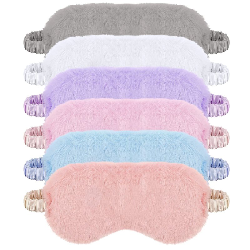 SATINIOR 6 Pieces Plush Eye Mask Soft Sleeping Blindfold Eye Cover Fluffy and Furry Eye Cover for Girls and Adult Eye Protection and Party Favors
