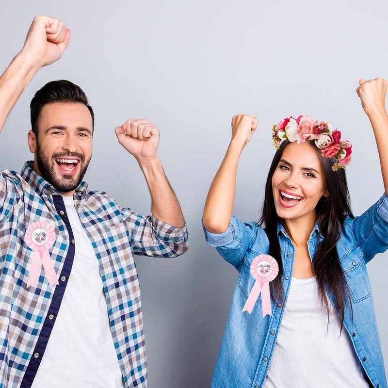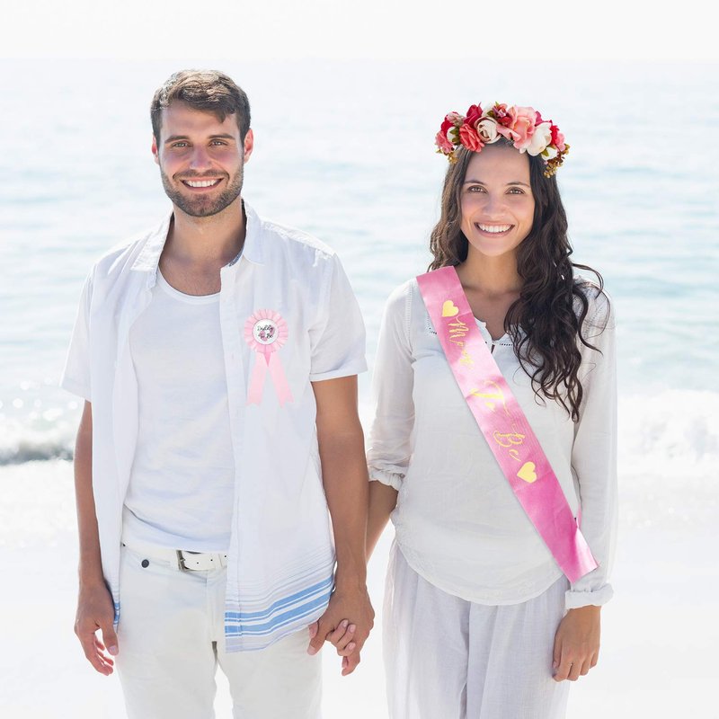 - What you get: a set including a handmade corolla for the pregnant woman, a sash for the mom, a mommy and daddy to be badge pins, a suit of 4 pieces to meet your party needs