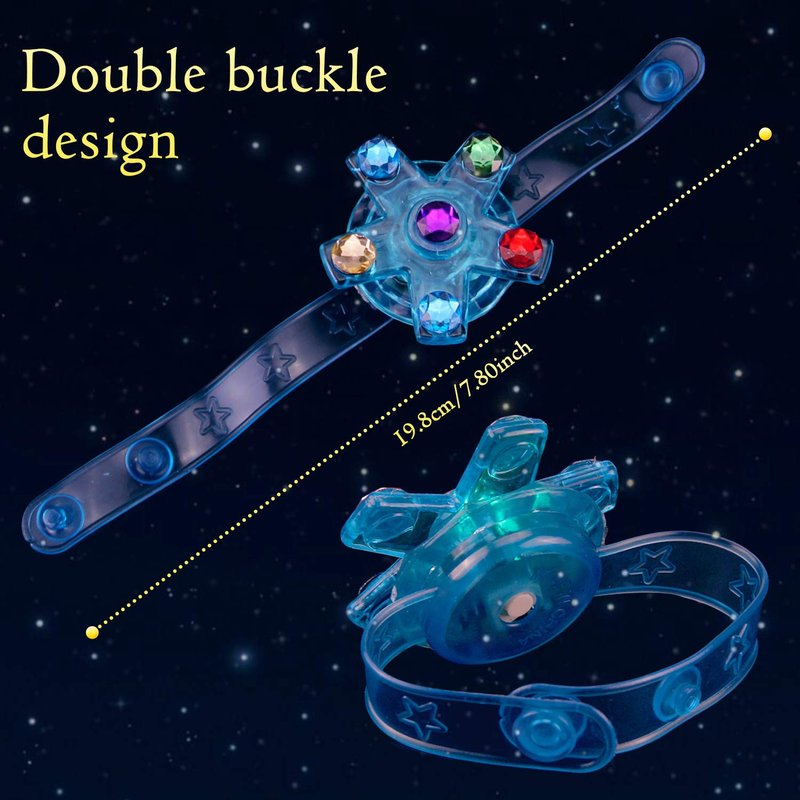 - 🎁Comfortable To Wear: The wrist strap of this light up bracelet is smooth, soft and suitable for skin contact. Double buckle design fits for wrists of different thicknesses, possible to be worn by both adults and children. The wrist buckle closes firmly, which won't loose when the children play.