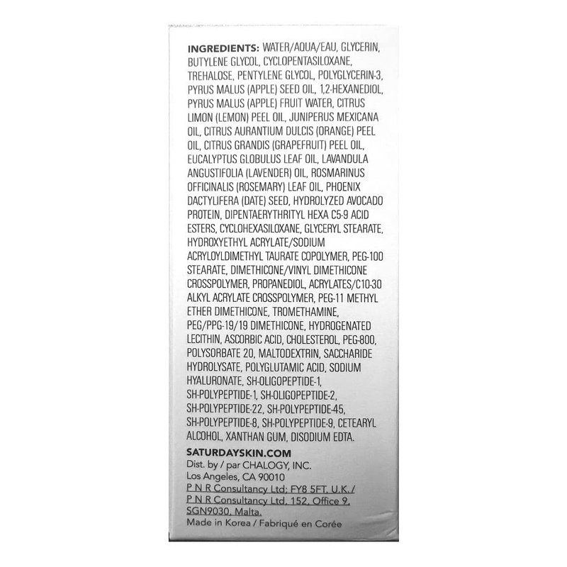 - DERMATOLOGIST TESTED: "Saturday Skin Wide Awake Eye Cream" NO PARABENS, SULFATES, SYNTHETIC FRAGRANCE OR SYNTHETIC COLOR. Hypoallergenic. Vegan friendly. Clean formula. Cruelty free.