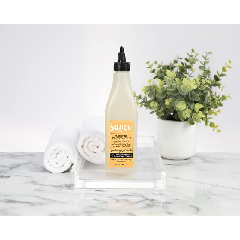 SAUCE BEAUTY Scalp & Hair Cleanser, Sparkling Apple Cider Clarifying Scalp Treatment, Restore Scalp Health with Apple Cider Vinegar & Tea Tree Oil, For Dry, Itchy Scalp and All Hair Types Gently cleanse and remove styling product residue and dirt without stripping the hair and scalp's natural nutrients, with Sauce Beauty Sparkling Apple Cider Clarifying Scalp Treatment. Infused with the crisp essence of apple cider vinegar and tea tree oil, it gently exfoliates and unclogs hair follicles, promoting optimal scalp health and hair growth. Free from alcohol, gluten, sulfates and parabens, our Sparkling Apple Cider Clarifying Scalp Treatment is your go-to solution for a clean, invigorated scalp. Works best for all hair types. Whether you're dealing with excess oil, product buildup or an itchy, flaky scalp, this clarifying treatment helps restore natural balance and health to your scalp, ensuring it remains clean, and rereshed. Enjoy the benefits of a sparkling clean scalp and beautiful, vibrant hair with this refreshing treatment. Before shampooing, wet scalp and hair. Squeeze excess water out. Apply product onto your scalp. Massage in, focusing mainly on the scalp and area around the scalp. Rinse thoroughly. Salon-Quality Haircare: At Sauce Beauty, we blend culinary-inspired recipes from kitchens around the globe to create nourishing hair care products with ingredients that are beneficial for your hair and scalp. It’s hair care for foodies!