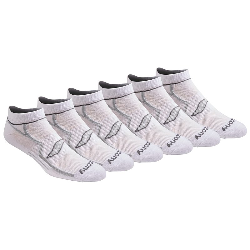 Saucony Men's Multi-Pack Bolt Performance Comfort Fit No-Show Socks, White (6 Pairs), Shoe Size: 8-12
