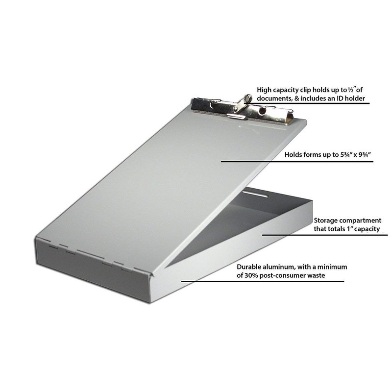 Saunders Silver Memo Size Aluminum Redi Rite Storage Clipboard with 1 Inch Storage Compartment and Self Locking Latch - Form Holder Perfect for Contractors, Truckers, and Office Use