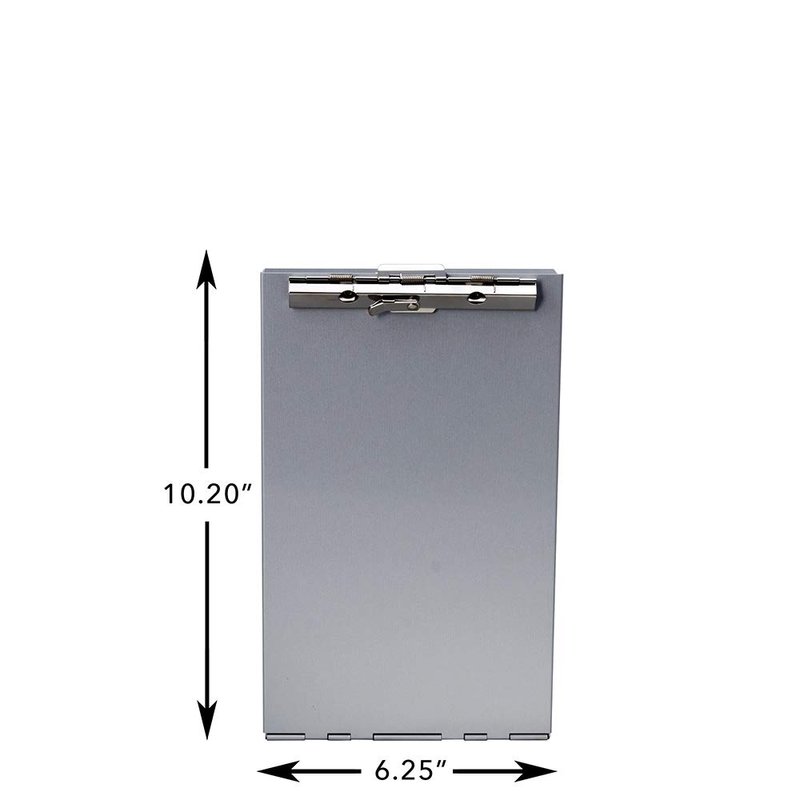 - Clipboard measures 10.2 in. x 6.25 in. x 2.75 in. (L x W x H) when laid flat on table; can fit documents and forms up to 6' X 10' (15.24 cm X 25.4 cm)