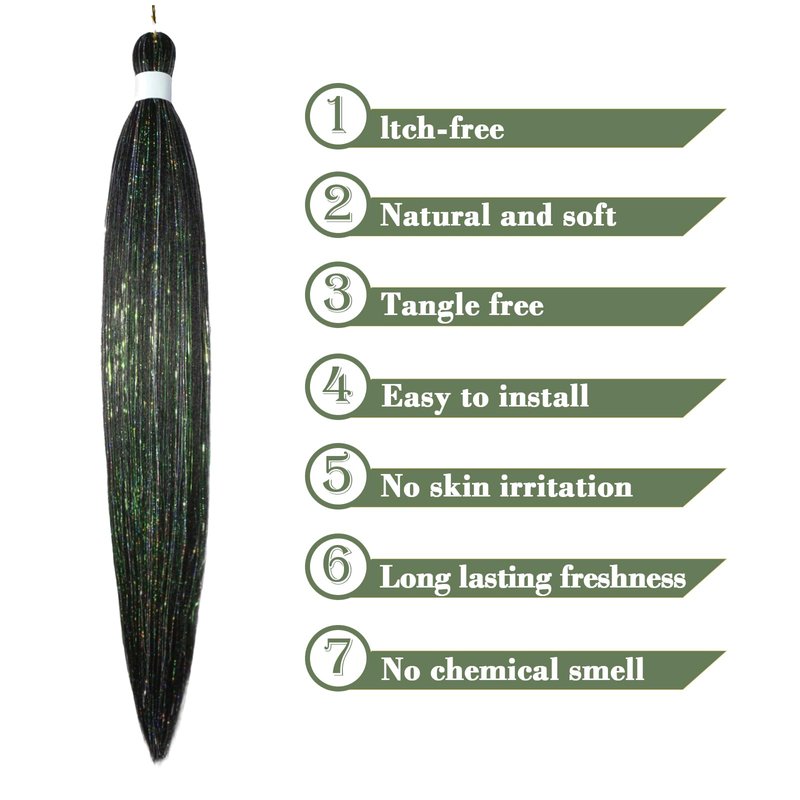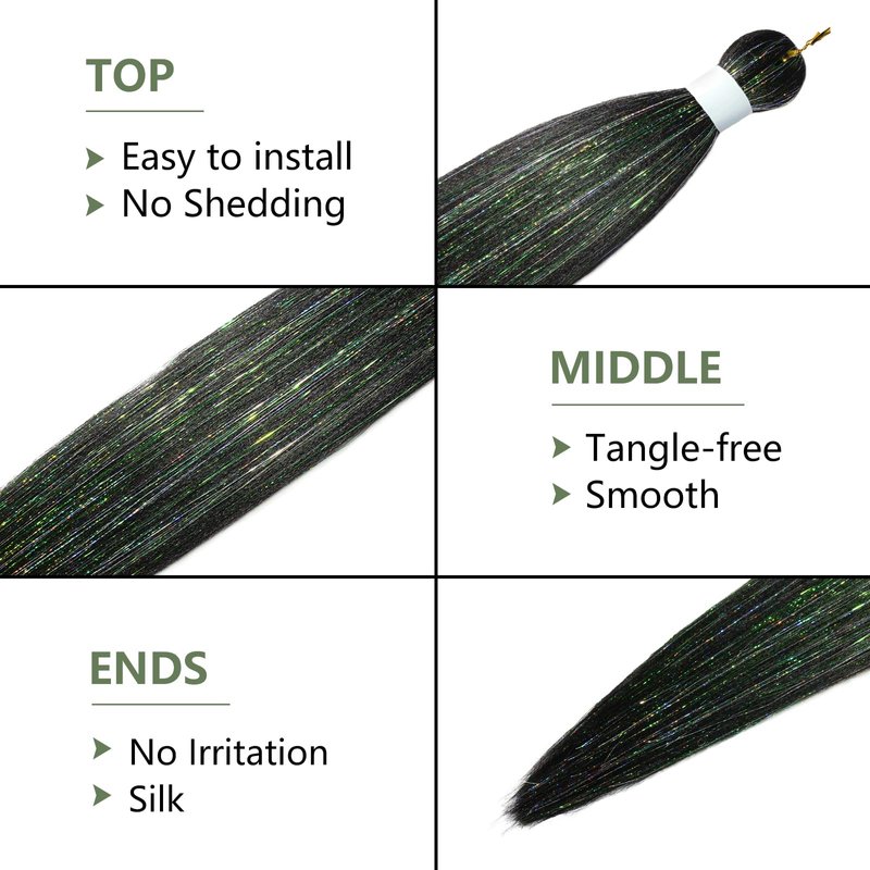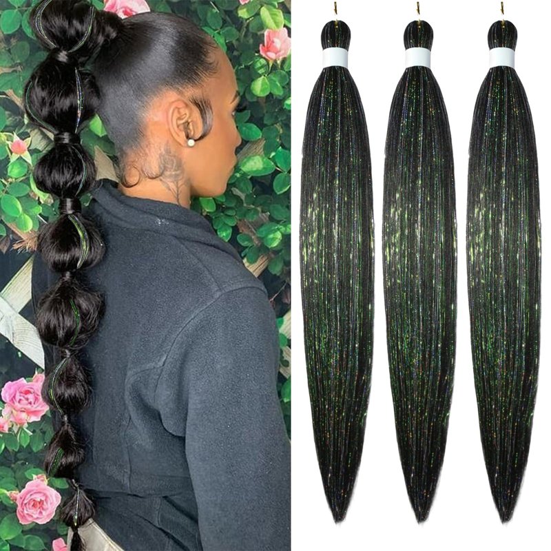 Savasana Black Tinsel Pre stretched Braiding Hair, 26 Inches Kanekalon Box Braids Hair Extensions, 3 Packs Yaki Texture Braiding Hair Pre stretched