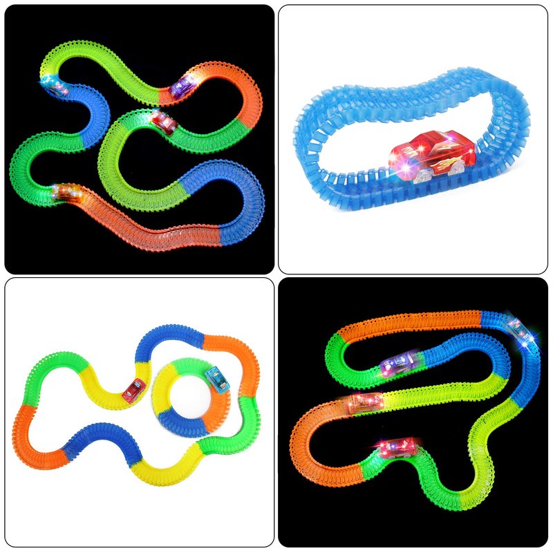 - 【Cool LED Light up Track cars】 - These four cool track cars feature 5 LED lights that kids will be attracted and enjoy it. But for this light up design, plastic has to be thin enough. So these cars had better not hit hard objects or hit walls hard, and do not fall from high places to protect them for long-term usage. If you wanna know more details about this track car, please watch the video at the end of the picture!