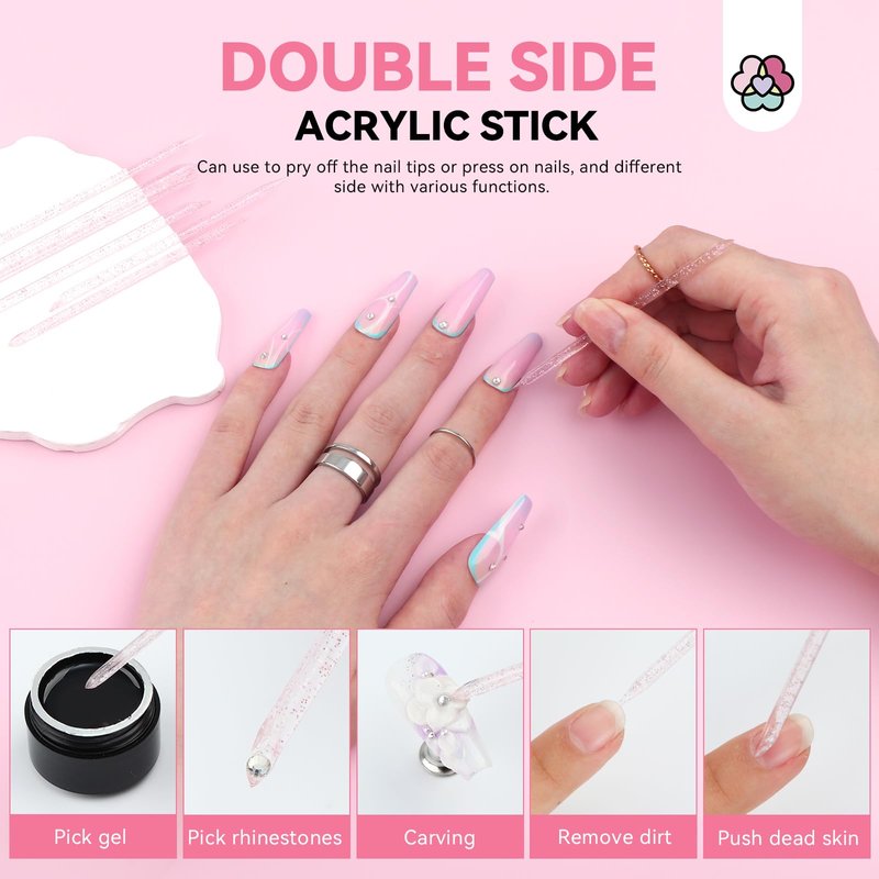 - ACRYLIC STICKS AND PORTABLE BAG: SAVILAND press on nail tool kit also includes 50pcs acrylic sticks, which can help you remove the dirt and nail art residue on your nail surface. The small bags can freely hold equipped nail art tools as you like and put them in the bags as a gift for yourself or others. No matter where you go, you can quickly wear nails and pair them with a confident outfit