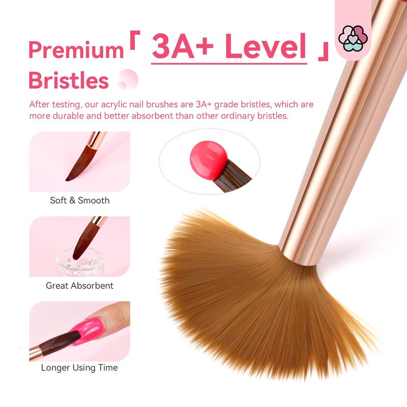 9. Premium 3A+ nylon brush hair, ultra soft and smooth, easy to apply and absorb. 10. Suitable for DIY home and nail salon, especially for acrylic nails practice.