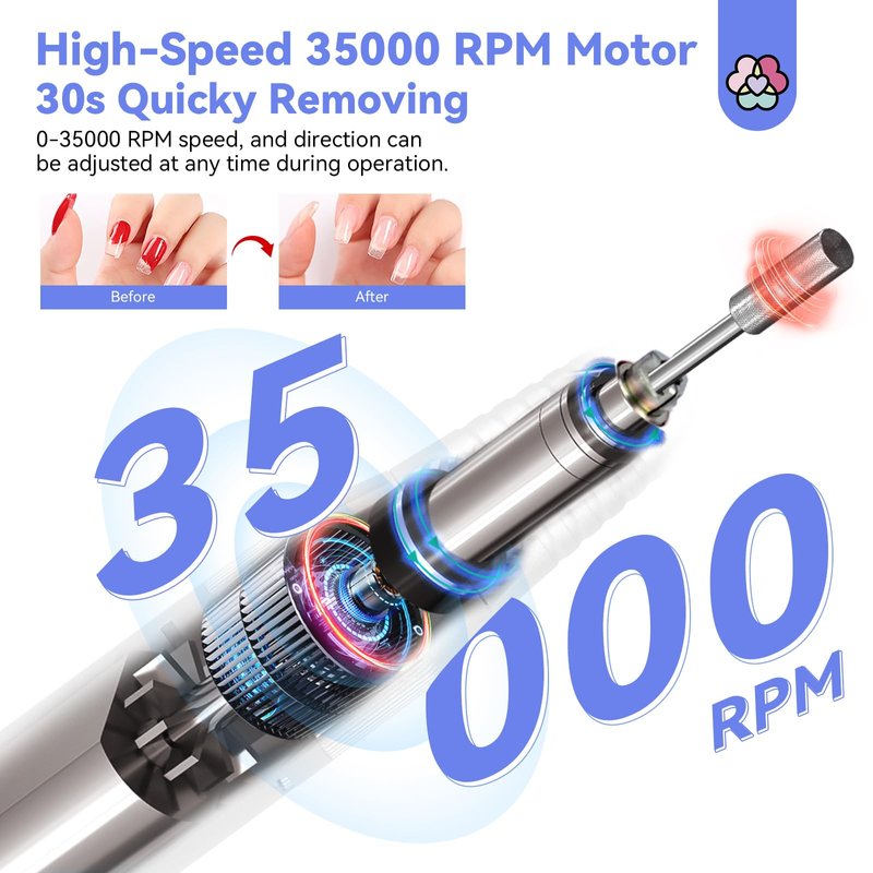- PROFESSIONAL 35000RPM NAIL DRILL KIT: Saviland portable electric nail drill set comes with a nail drill machine and a nail drill pen, up to 35000RPM. A must-have nail drill for professional nail salons, providing better service to your clients. Also, perfect for nail art lovers or nail starters DIY nails at home.