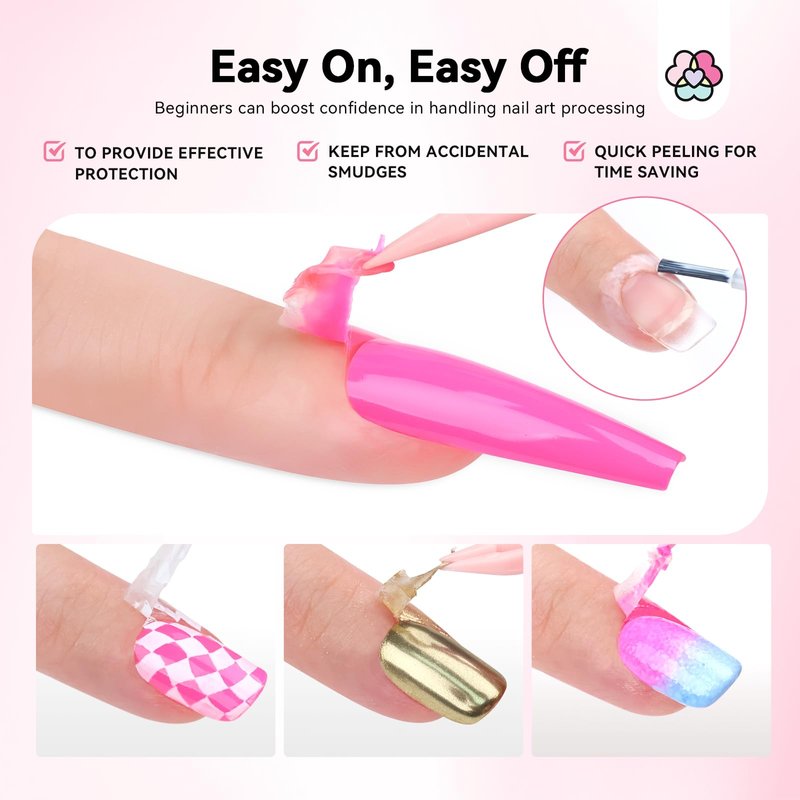 • 【TIPS & SERVICE】 First, apply the nail peel off liquid tape with a thick layer. Second, peel off the latex tape after curing your gel nail polish. Last, avoid accumulating too much gel nail polish on the latex tape during use for easy peeling & protecting your nail art. Feel free to contact us if you have any questions, and we will help you to solve it at once.