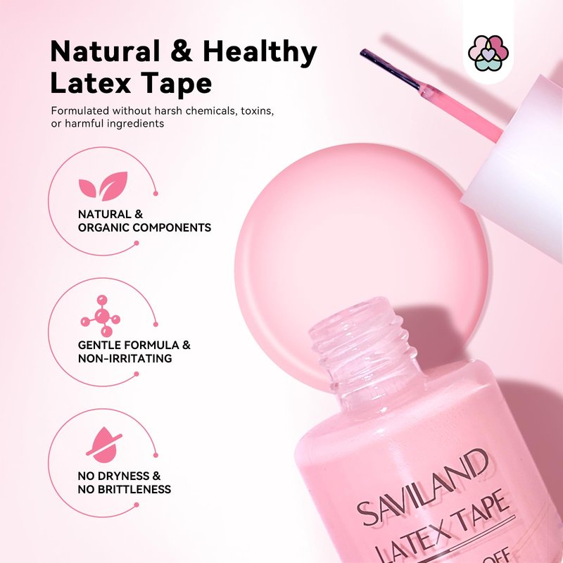 • 【UPGRADED LATEX TAPE PEEL OFF FOR NAILS】 SAVILAND nail polish protector is a quick drying latex nail polish barrier that protects the cuticle from the mess of nail art applications such as marbling, gradients, nail polishes, French manicures, stamping and many other types of manicures. Great for those who need to remove polish quickly without using acetone.