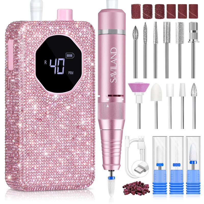 SAVILAND Professional Nail Drill 40000 RPM: Portable Diamond Nail Drill Kit Rechargeable 4000 mAh Electric Nail File for Thick Acrylic Nails with Ceramic Nail Drill Bits Sanding Bands Nail Tech Salon